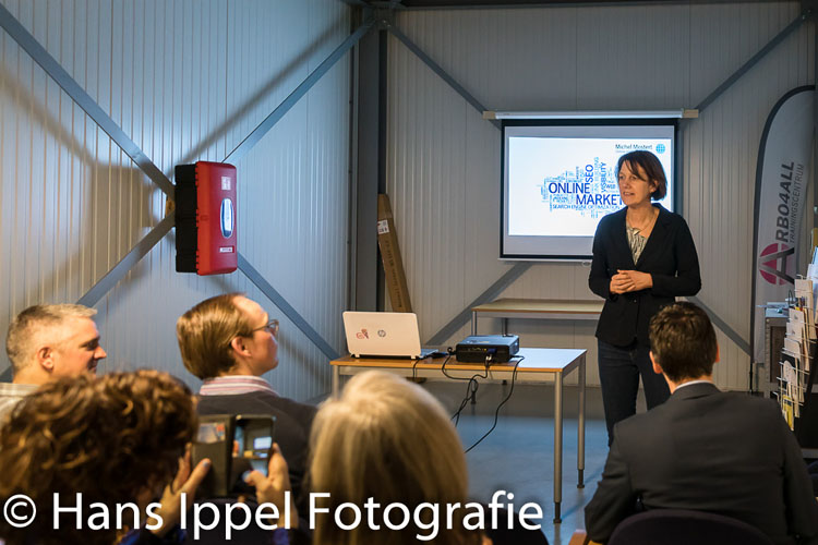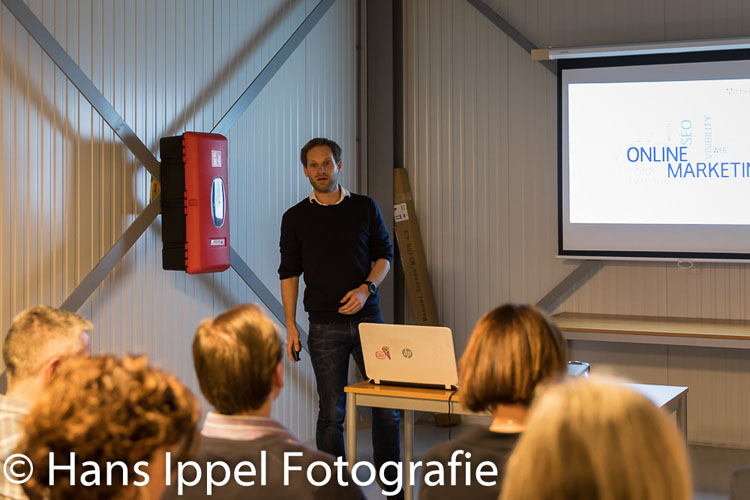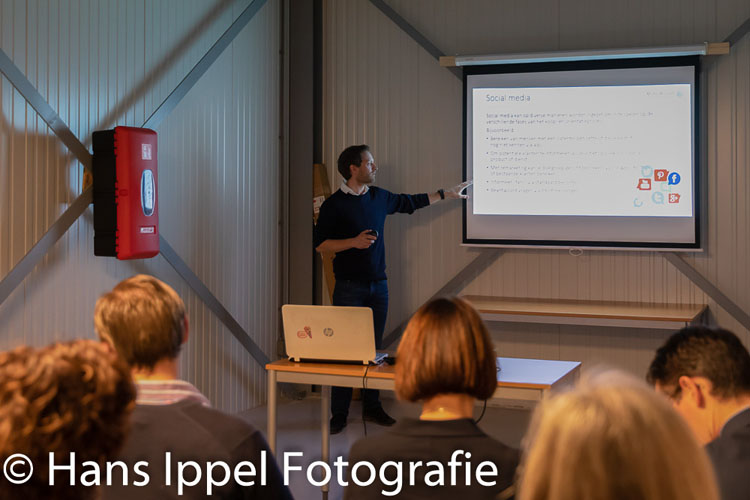 Voor de rondleiding en de bitterballen gaf Michel Mostert een presentatie over online marketing. Michel kan er boeiend over vertellen. Goede online marketing vergt meer inspanningen dan de leek zo op het eerste oog ziet. Zo moet je bijvoorbeeld je online marketing aanpassen aan de fase van het proces (lead, prospect, klant).